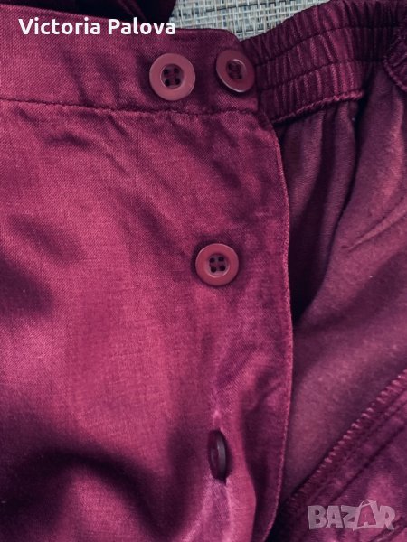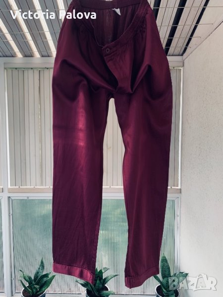 Хубав удобен пижамен панталон,на колана е с ластици за удобство,отпред е с две копчета да се ползват според обиколката на талията.хубав цвят и материя-52% памук.