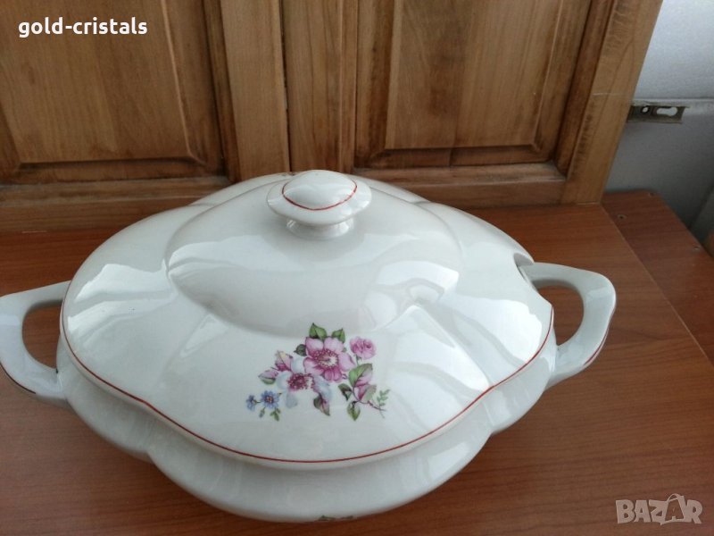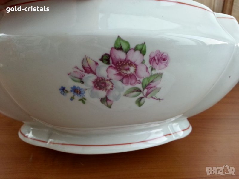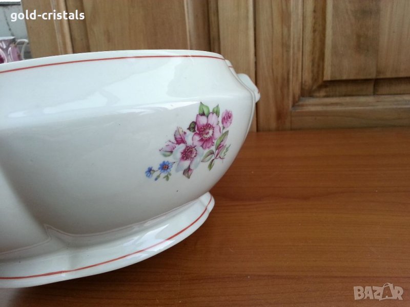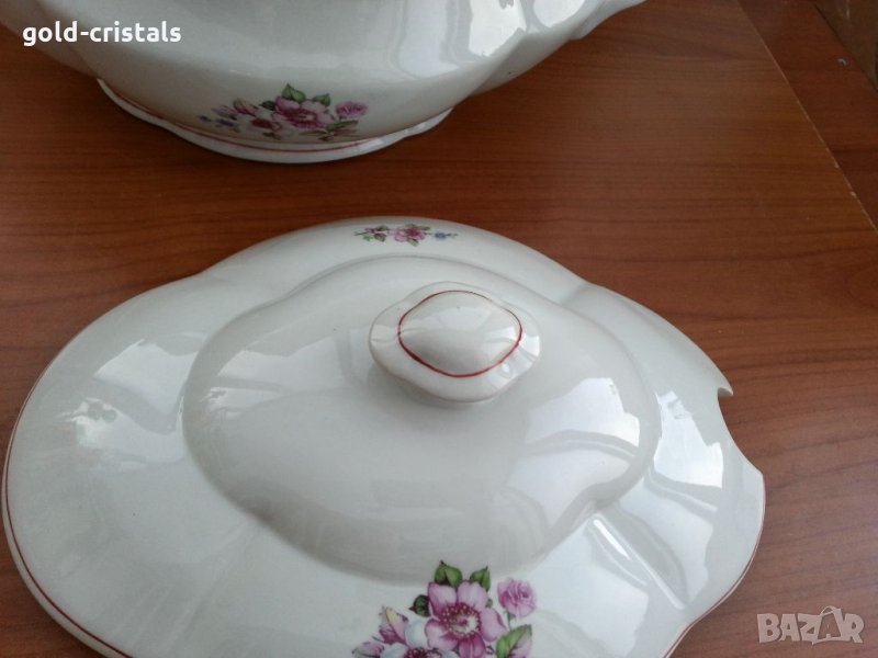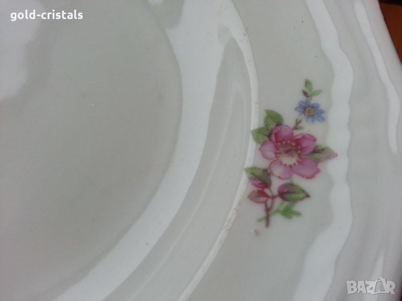 Стар български порцелан чинии 6бр-45лв дълбоки ползвани с следи от употреба и фабрични точки сервиз комплект сет лот ретро арт декор винтидж колекция стари антикварни предмети обзавеждане за дома и семейството подходящи за подарък за ценители и колекционери супник -65лв сосиера 35лв