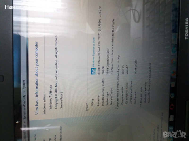 Лаптоп TOSHIBA → Обява 33208290