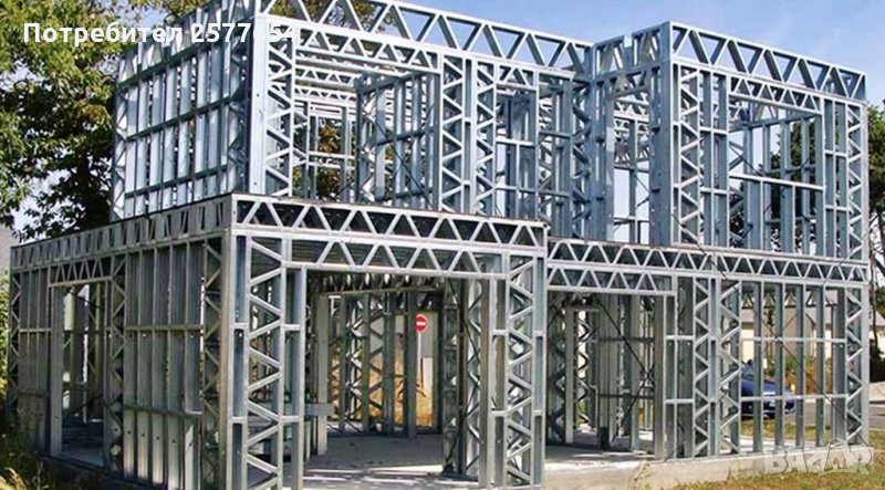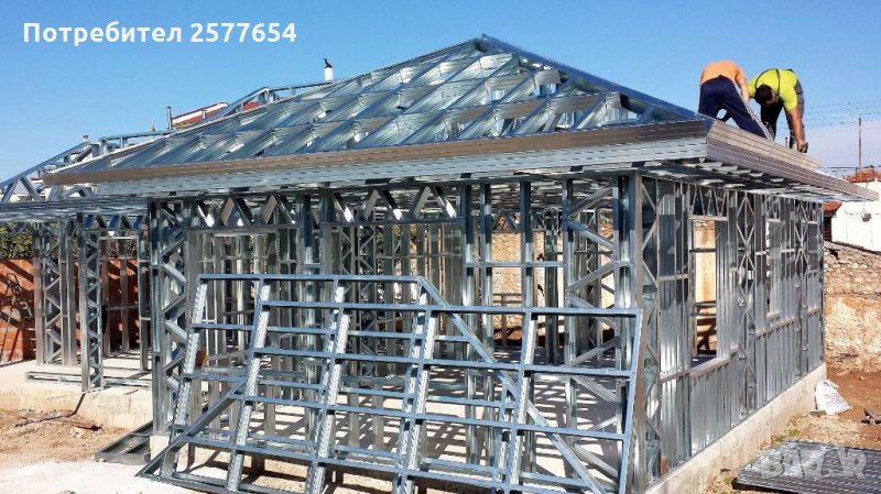 Цената е за къщи с равен или двускатен покрив, сглобяем комплект от леки стоманени конструкции. Възможно е изработка и на други по ваш проект. Ние можем да произведем кит конструкции от стомана от 50м2 до 2000 м2.