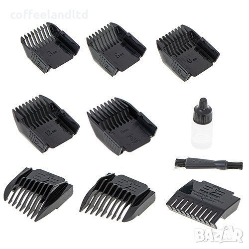· 5 гребена: 3, 6, 9, 12,15 мм 2 леви / десни приставки за засенчване 1 приставка за изтъняване