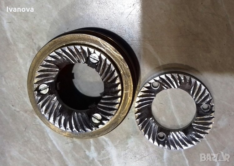 Продавам употребяван електромотор/220 волта /160 вата/ с ножовете от неръждаема стомана остри за мелене на българска кафемелачка с 16 степени на смилане на кафето, произведена в „Електрон“, Плевен, 2800 оборота/мин, 50 децибела, Диаметър на ножовете: Ф 43 мм / десен.