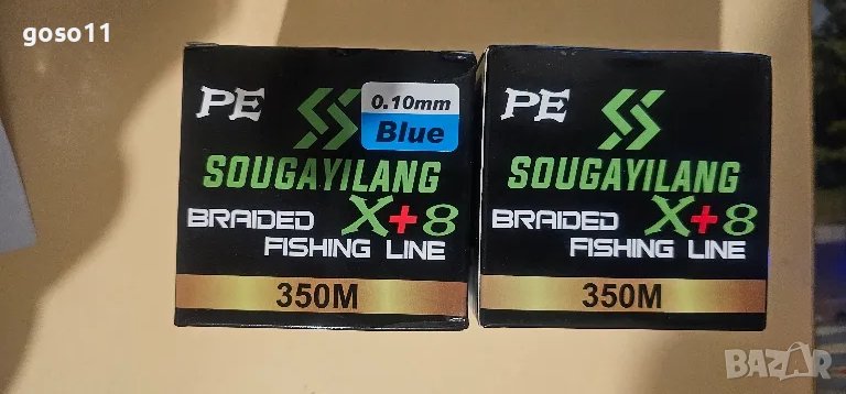 -- 10 снимка : Sougayilang 350м. ; 4 нишки ; цвят - зелен/както е на снимката/ ; невидим във водата ; налични - 1бр. ; цена - 9,30€./бр. ; размер - 0.16мм. - 10кг./23LB ;