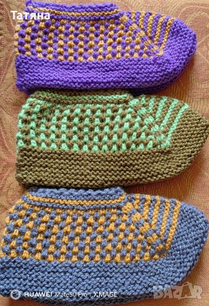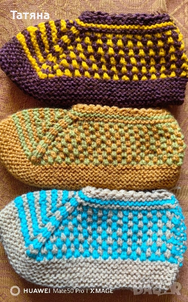 Плетени терлици от нова мека прежда. За Размери от 36 до42-цена 2,50евро. Номера над 42 номер- по предварителна заявка цена 3,50евро за чифт.