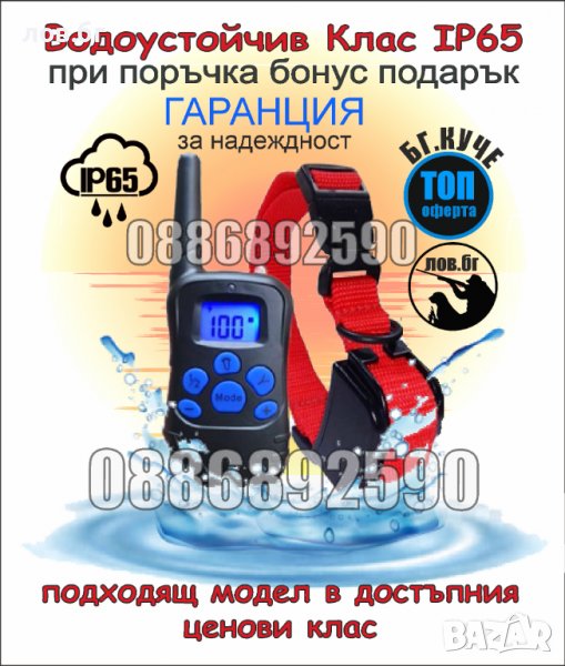 - Нашийникът е ВОДУОСТОЙЧИВ Клас IP65