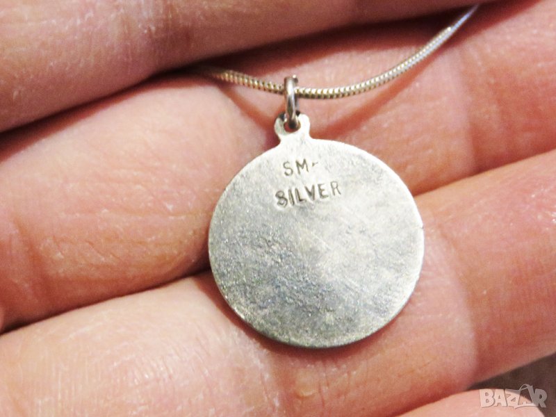 Старинен медальон и сребърно синджирче - Свети мъченик Христофор пресича поток и носи дете на рамото си. Бебето Исус.