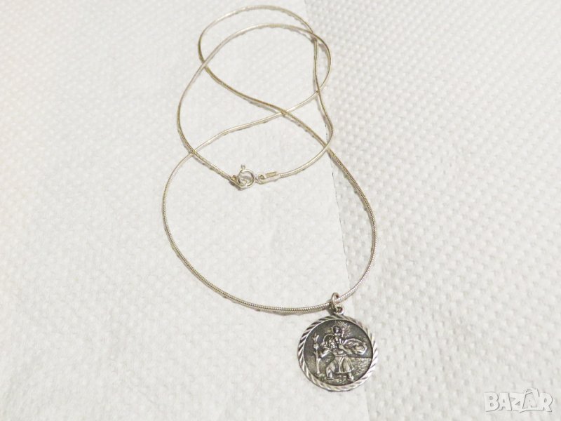 Старинен медальон и сребърно синджирче - Свети мъченик Христофор пресича поток и носи дете сребро