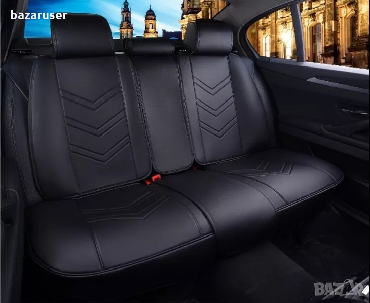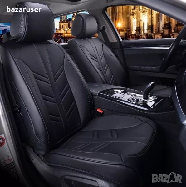 К-т Черна Кожена Тапицерия(Калъфи за Седалки) Подходящ за всички автомобили