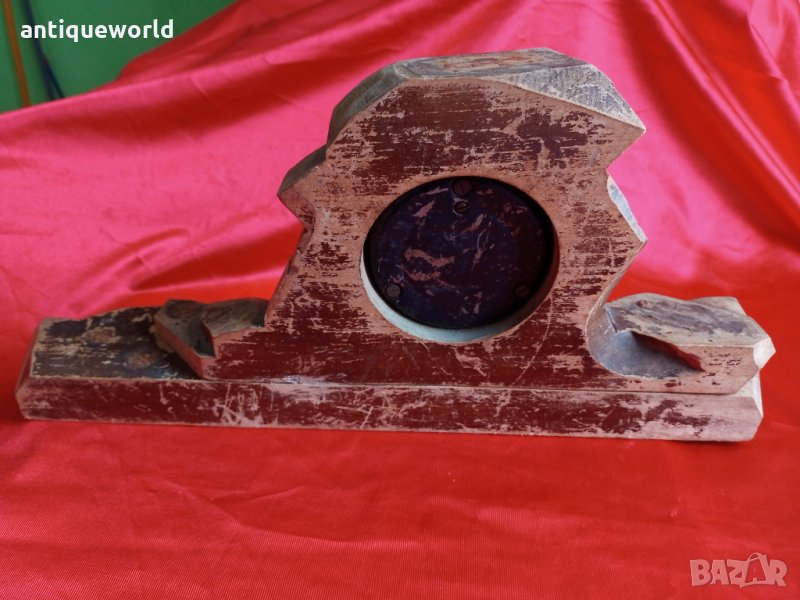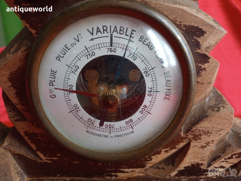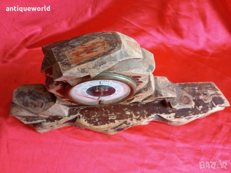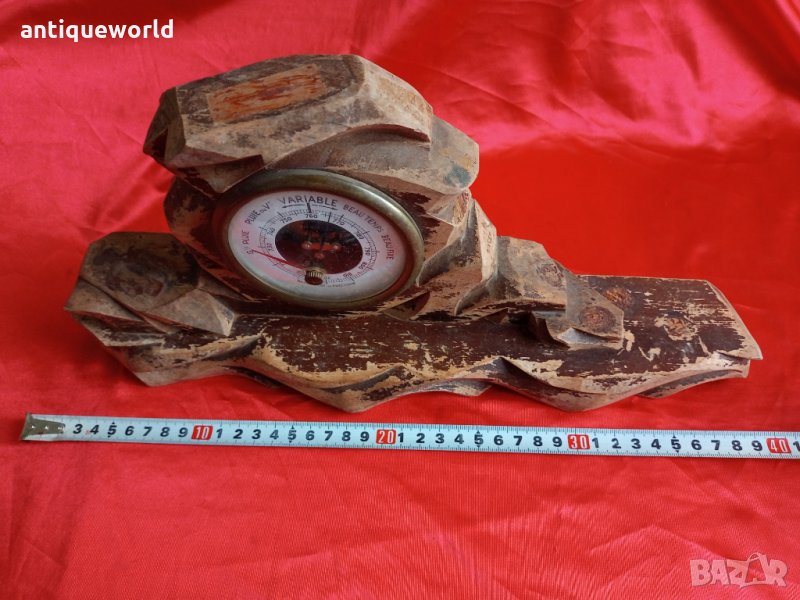 Рядък Стар Голям Масивен Дървен Настолен БАРОМЕТЪР.Работи.