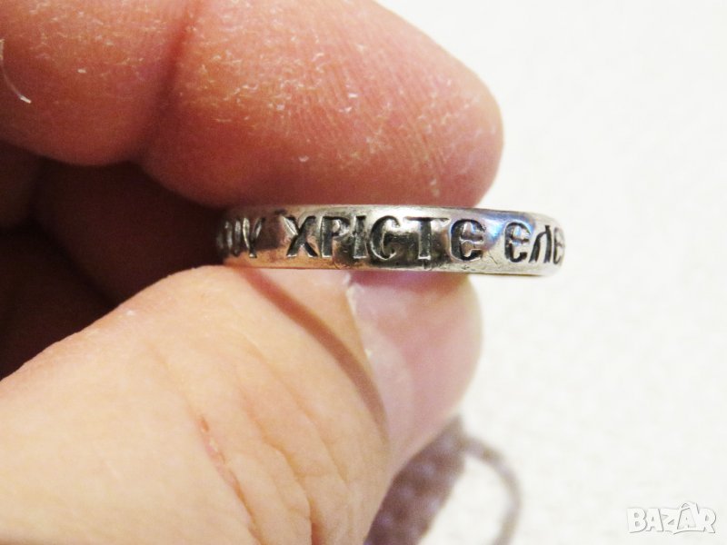 стар Мъжки сребърен пръстен, Стариннен сребърен пръстен с думи към Исус в надпис kypie ihcoy сребро