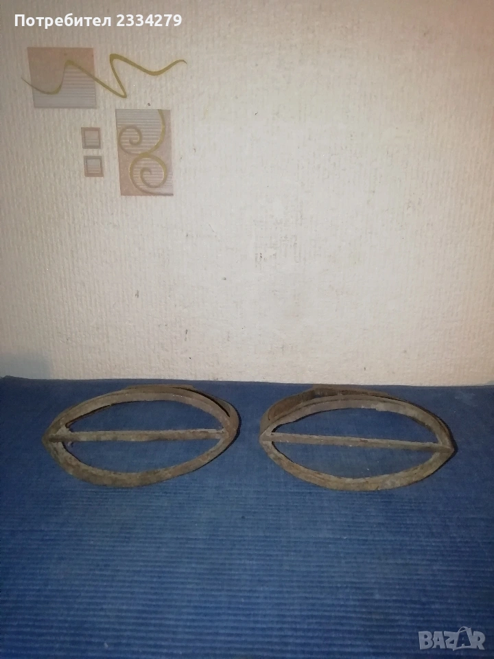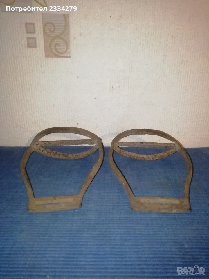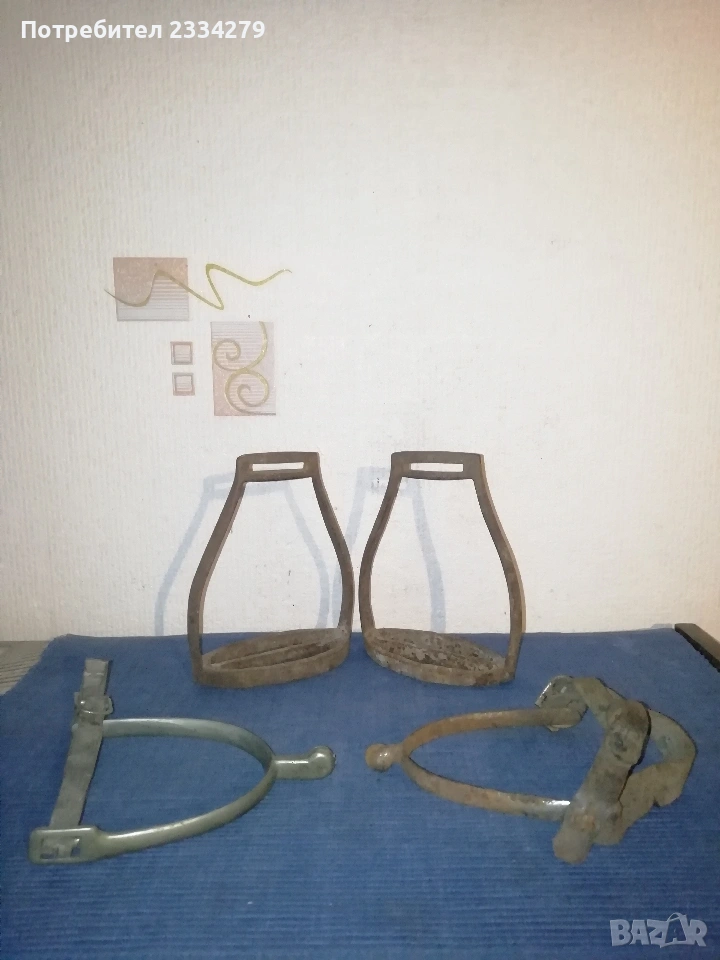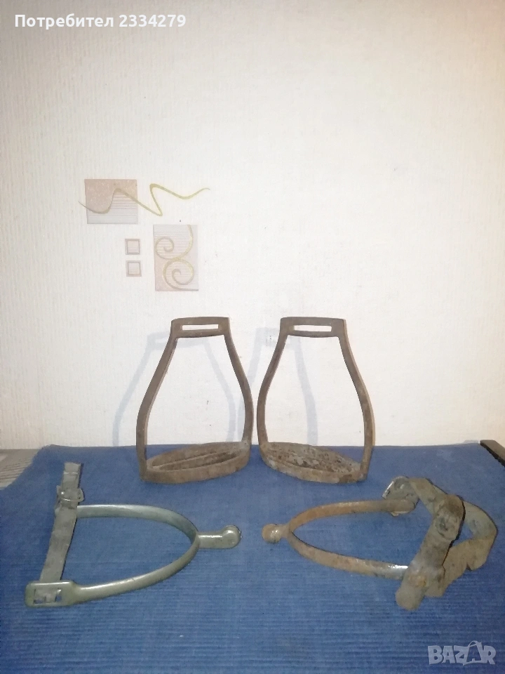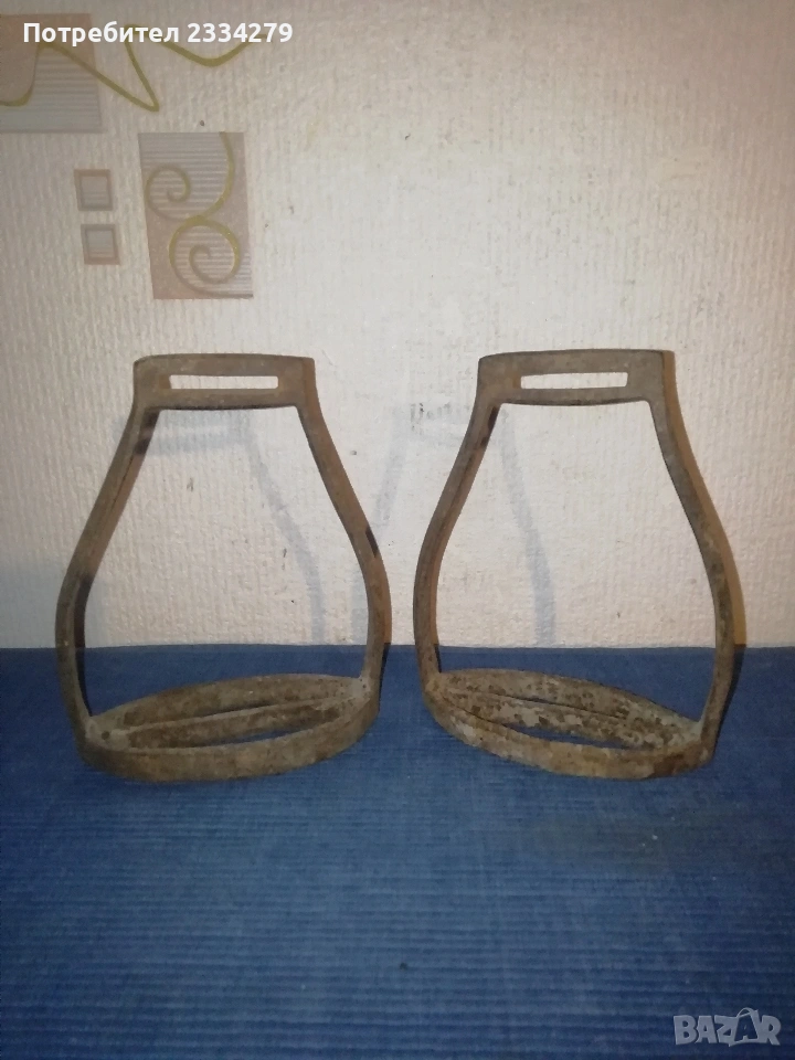 Стари предмети използвани за коне,ръчно изработени и изковани. Немската голямата е от бронз и цена:13лв. Другите от желязо юзда-свуя, ,,СТРЕМЕНА"скобите на седло.Всичко е 100% автентичност, цена 5лв за брой. Копита за щастие с цена от 3до5 лв. Комплект 8броя копита за бивол с цена 12лв. ,, Котки" поставяни на