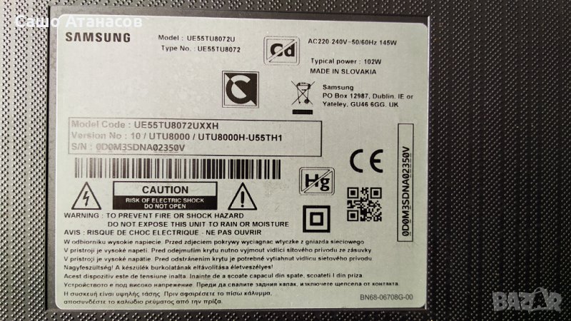 Модули от телевизор SAMSUNG UE55TU8072U със счупена матрица (панел CY-BT055HGHR1V / BN07-01642A )Телевизорът е чисто нов, изобщо не е използван.
