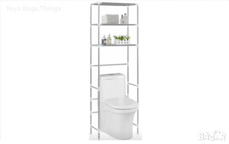 Стелаж за съхранение, над тоалетна чиния, за пране или домакински прибори, на 3 нива - сребро