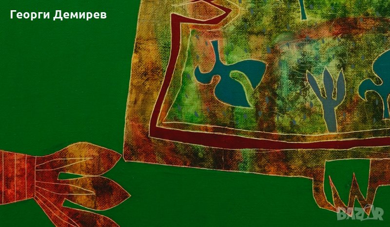 "Градина" - Mасло, платно, дървена рамка. Размер на платното - 80см Х 60см. Външен размер на рамката: 88см Х 68см. Автор Георги Демирев