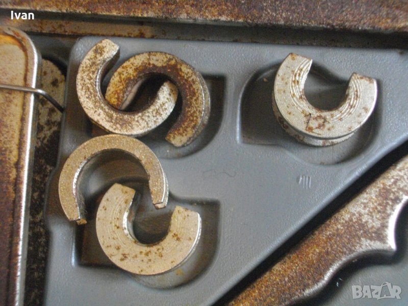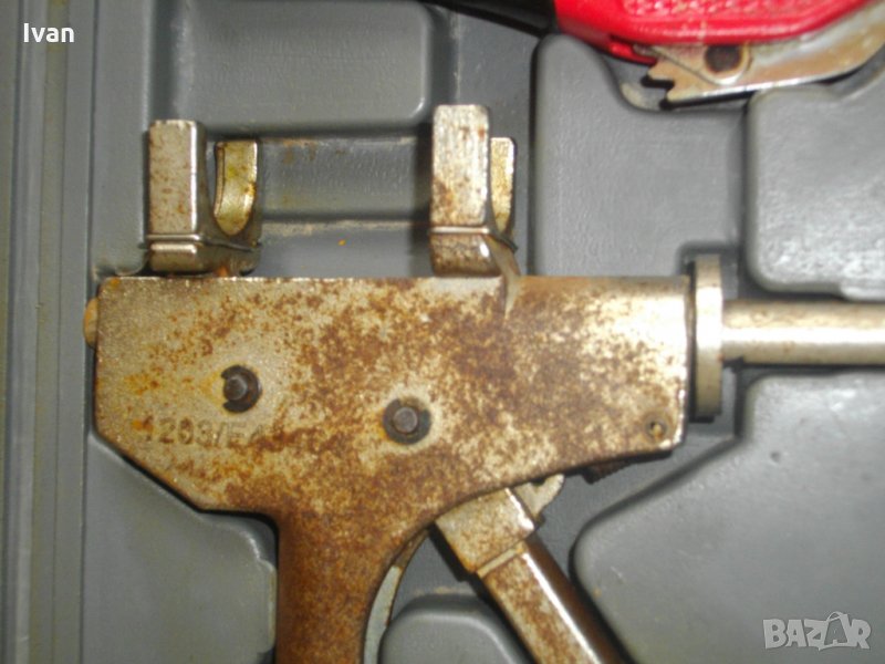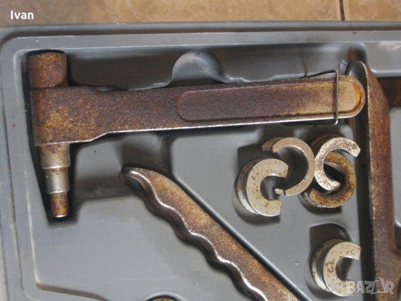 Професионален комплект за разширяване на тръби, френско производство. Комплекта е ползван, но е в ОТЛИЧНО техническо състояние. Модел на комплекта 1203/ Е 43464. Почти нов, стоял е неизплозван. По металните части на клещите и разширителният инструмент е започнала лека корозия/ръжда.
