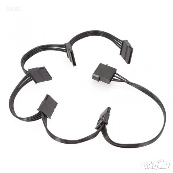 от 1 брой Molex 4 pin захранващ кабел към 5 броя SATA 15 pin захранващи кабела