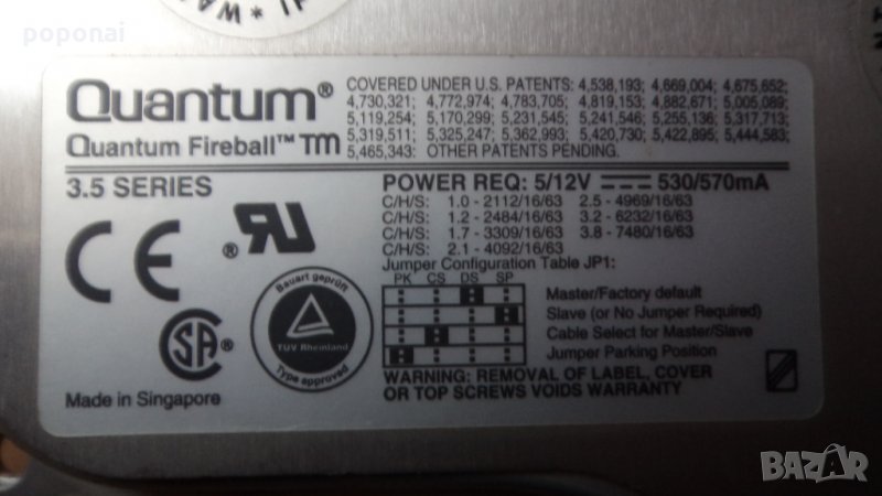 Харддиск quantum fireball 1280 at, снимка 1 - Твърди дискове - 33239780 Харддиск quantum fireball 1280 at, снимка 2 - Твърди дискове - 33239780 Харддиск quantum fireball 1280 at, снимка 3 - Твърди дискове - 33239780 1/3