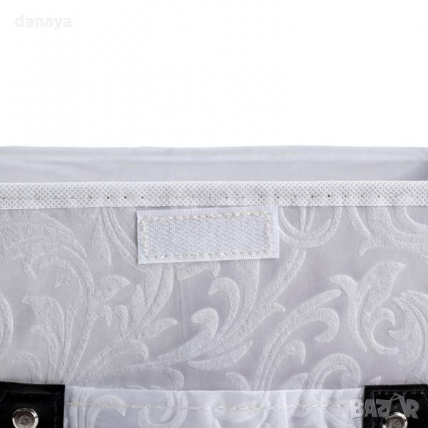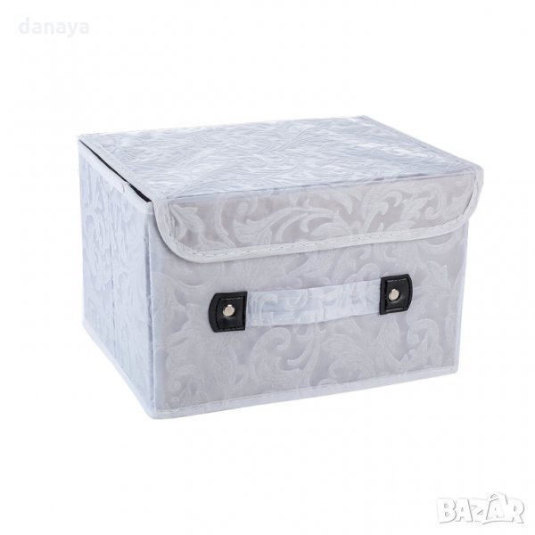 Малка текстилна сгъваема кутия за съхранение на всякакви дребни аксесоари с красиви флорални мотиви. Широко приложение – може да се използва като кутия за съхранение на лекарства, кутия за съхранение на гримове, тоалетни принадлежности, канцеларски материали, ученически пособия и т.н. Компактен размер, кутията може да се сгъва и не заема почти никакво място в сгънато положение. Това позволява да се използва и при пътуване. Елегантен и нежен дизайн в бяло.