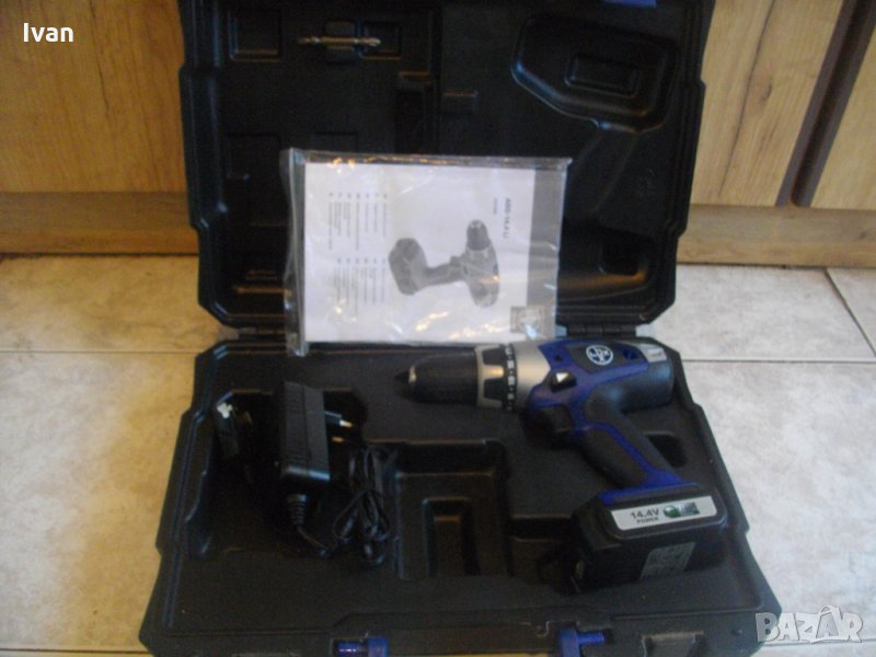 Мощност на мотора-14,4 волта,2 скорости,23 степени на натягане,отделно функция пробиване.Обороти-0-340 и 0-1200 в минута.Вграден челен силен Лед фенер-просветка.Патронник-универсален,оригинален на марката,самонатягащ до 10мм.Плавен старт на спусъка-шпиндел.Реверс смяна посока.Гумирано нехлъзгащо се противоударно покрития на дръжката.Батерия-оригинална немска на марката,производство на Akku Pack.14,4 волтова,1,3 ампера-литий-йон технология.Отлична-силна,мощна,държи много.Универсална-съвместима с други немски,белгийски,холандски марки.Зарядно-литий-йон,оригинална немско на марката,универсално.Характеристики-21 волта,0,34 ампера,11 вата.1 светлинна индикация.Отлично.Към машината има 1 брой нов дълъг немски оригинален двустранен накрайник-бит.Има и книга-указания за употреба,на небългарски езици.Комплекта е прибран в оригиналният на марката твърд пластмасов куфар с фабричното лого и дръжка.
