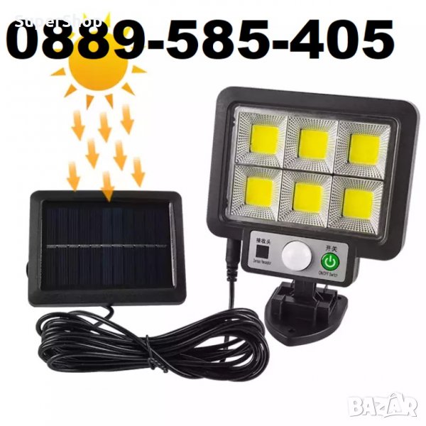 Уникална Соларна Лампа LED 50w Светлина прожектор с дълъг кабел и пан