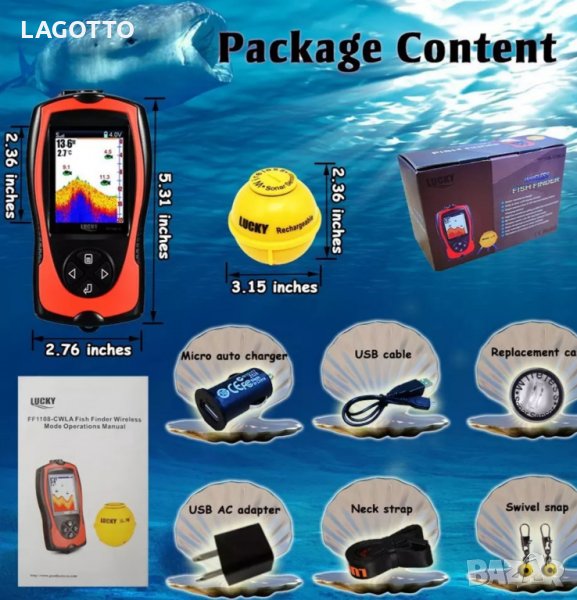 БЕЗЖИЧЕН СОНАР-ЛЪКИ,ВОДОУСТОЙЧИВ С ГОЛЯМ ОБХВАТ