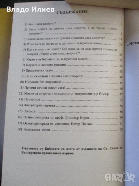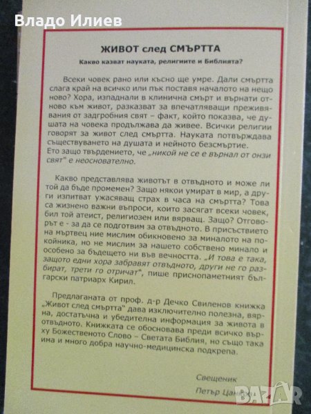 Книгите и "Наръчникът по френски език са нови,нечетени,в отлично състояние."Родът Панчеви"/очерк за един български род/-от Димитър Петров и Свилен Маринов."Ле франсе парле"/наръчник по разговорен френски език/-част 1-ва."Живот след смъртта"/какво казва науката, религиите и Библията?/-професор доктор Дечко Свиленов/ 2 броя/.