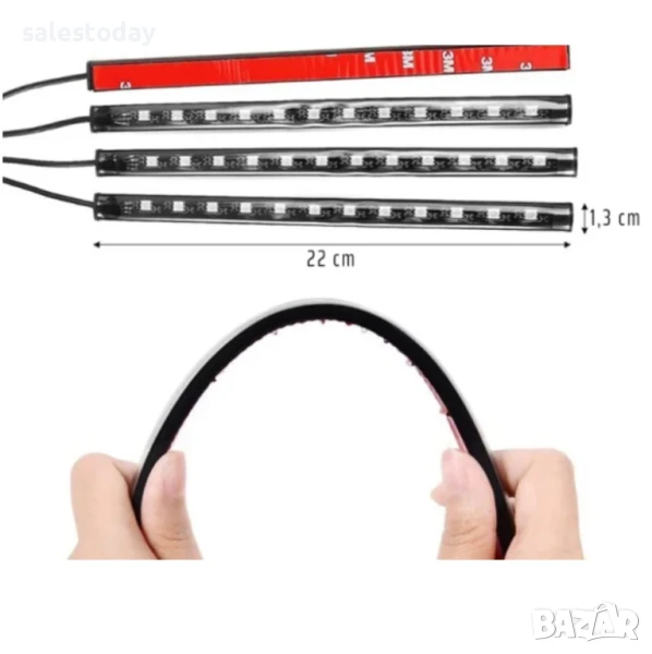 Светаща лента за кола, 4*22см, RGB, НЕОН, Интериорни Светлини