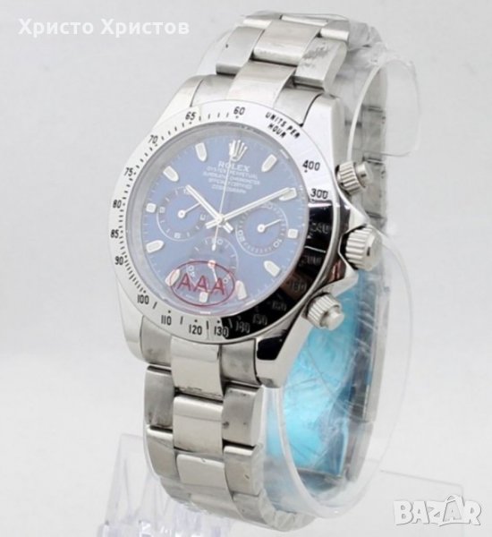 Луксозен ръчен часовник Rolex Daytona, механичен, автомат, полиран стоманен корпус L316, ефектен син циферблат с дата, ден, 24 часова позиция и стоманена верижка, клас ААА с оригинално закопчаване.