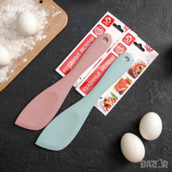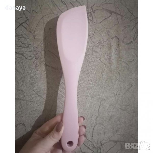 Кухненска силиконова шпатула. Бъркалка за разбъркване и готвене. Лопатка тип сладкарска шпатула. Чудесна за разбъркване в пластмасови и стоманени купи, особено подходяща за съдове с незалепващо покритие. Кухненски прибор, който е нужен за всяка кухня. Шпатулите се предлагат в различни цветове.