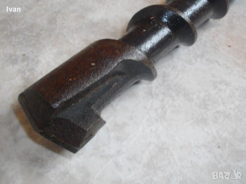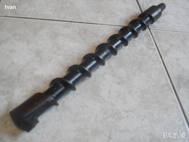 Цена на свредлото/бургия размер ф 35 мм - 420 мм дължина - 99 лв. Голяма видирана бургия-свредло,за къртене и пробиване на бетон, скали, камък - размер ф35мм.Свредлото е немско оригинално производство.Почти нова е,един-два пъти е ползвана за кратко.Видиевата глава няма никакво износване.Размера на свредлото,упоменат на него е 35х350мм.Цялостната дължина е 42 см,само пробивната част е с дължина-37см.Спирабните улей са дебели,с широчина между тях-3см,8 броя улей.Самата глава за пробиване е с дължина-2 см.Свредлото е твърдосплавно стоманено,с хром-ванадиум покритие.Захвата на опашката е за стар тип перфоратор-захват кръгъл,леко скосен конус.