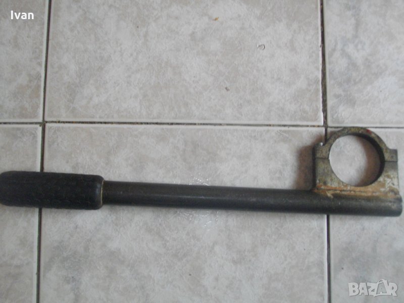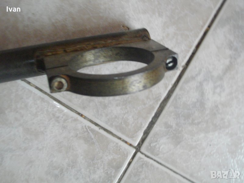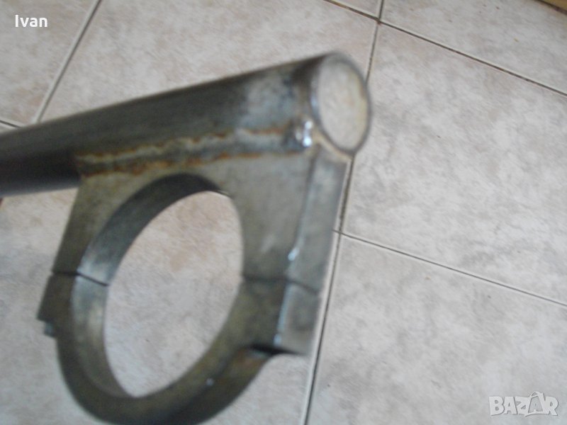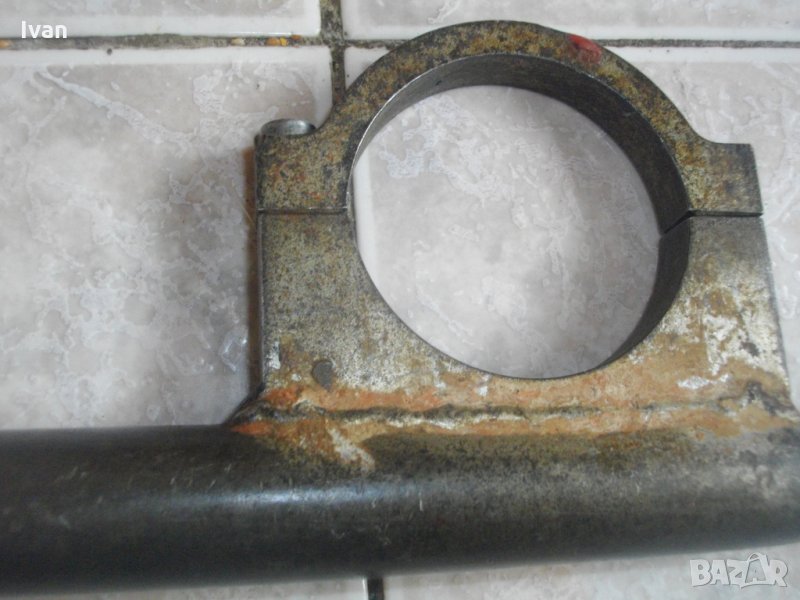 Описание на масивна стоманена италианска дълга дръжка размер на кръга ф 58 мм - цена 49 лв. Голяма,масивна,стоманена изцяло,предна дръжка за къртачи и перфоратори.Дръжката е с капацитет за вкарване на машина-ф58мм.Италианско орогинално производство е, вписано на маркировките, старо висококачествено.Със запазен външен вид и отлично техническо състояние.Изцяло метална-от дебела стомана,масивна.Основата е дебелостенна куха тръба,с диаметър ф24мм.Цялостна дължина на дръжката-410мм.Дебело масивно гумирано релефно,нехлъзгащо се,покритие,при захвата на ръката.Прикрепващата скоба е стоманена, дебела, с захват 2 болта.Цената на дръжката е твърда и крайна.