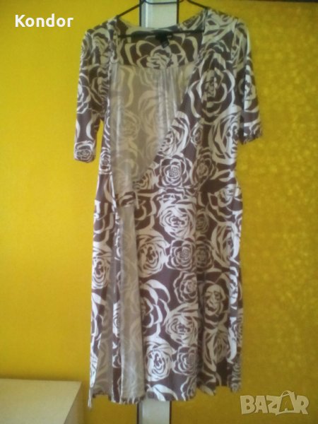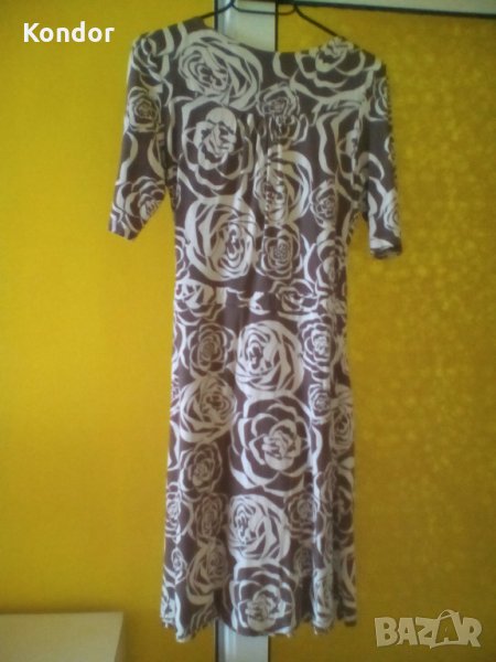 Дължина на роклята отпред 83 см, отзад 78 см. С гол гръб и обло деколте
