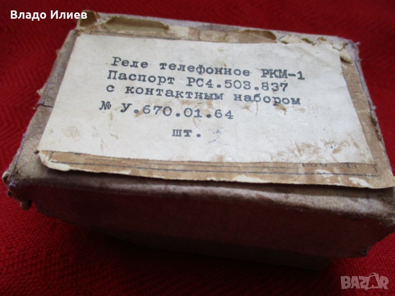 От снимките се вижда,че релето е оригинално руско-"Реле телефонное РКМ-1.Паспорт РС 4.503,837 с контактным набором № У.670.01.64.Шт.2".Това е написано на кутийката му.Електронните елементи/съпротивления/ и телефонната слушалка също са нови и оригинални.