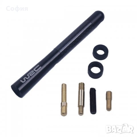 Уникална, спортна антена WRC с карбонова оптика. Изработена от висококачествени материали и е изключително лесна за монтаж. Дължина 12см. Комплектът включва 4 вида накрайници / преходи за всички видове автомобили и 2 вида уплътнения.