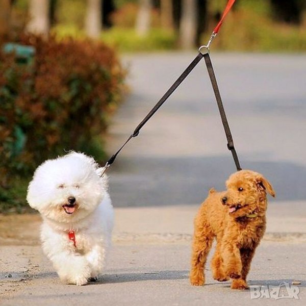 Регулиращ двоен повод за куче. Двоен повод. Поводи за кучета. Повод за две кучета.