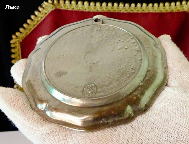 Старинна немска чиния за хапки,чиния за десерт,подложка за чаша,пано,изработена от от 95% калай и 5% сребро,маркирана.В