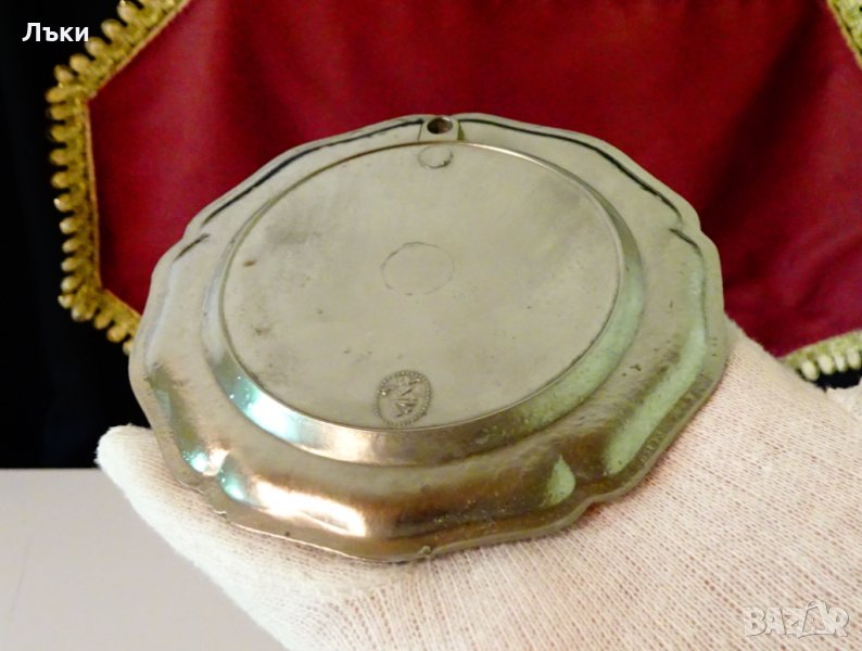 Старинна немска чиния за хапки,чиния за десерт,подложка за чаша,изработена от от 95% калай и 5%