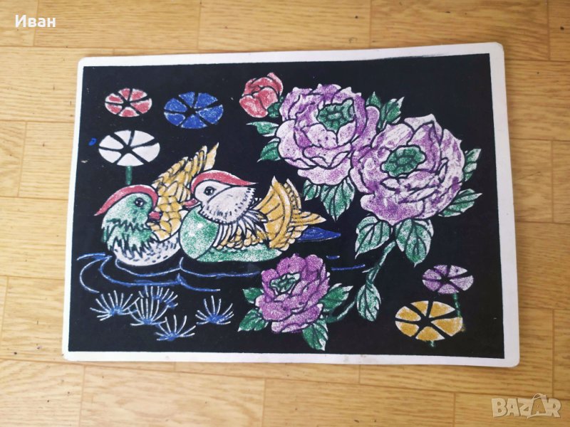 - Пано от велур с птички. Размер- 28х20 см. - 10 лв.
