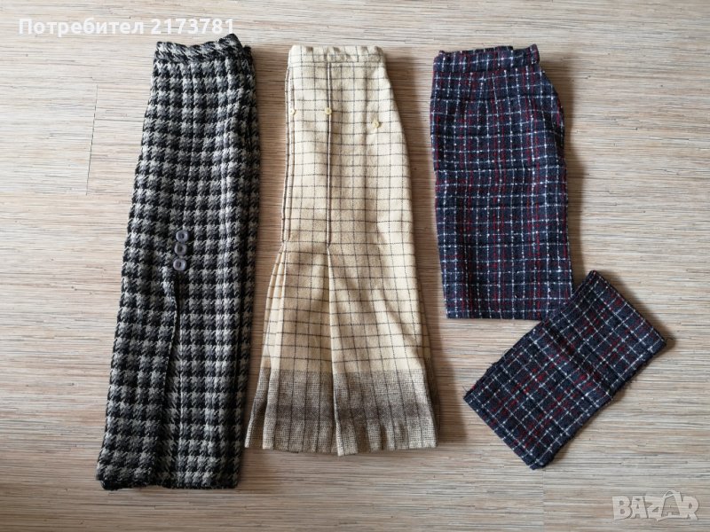10 - Бяло и черно, каре - от тънък вълнен плат, права, дължина под коляното, с цепка отпред
