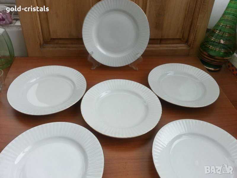 Стар български порцелан чинии с златен кант нови в кашонче за предястие 8бр-24€ има и дълбоки 6бр-15€ за основно 8бр-30€ сервиз комплект сет лот ретро арт декор винтидж колекция старинни антикварни предмети обзавеждане за дома и семейството подходящи за подарък за ценители и колекционери