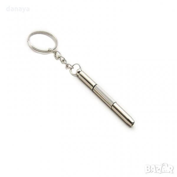 Малък ключодържател 3 в 1, който побира в себе си права отверка, кръстата отвертка и глухо ключе 3 мм. Ключодържателят е съставен от 3 части които се свързват с резба. Когато е цял служи като глухо ключе 3 мм, когато развиете предната част получавате права отвертка и когато развиете задна част – кръстата отвертка. Подходящ е за часовникарски цели, поправка на очила и други .