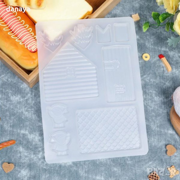 Сладкарски шаблон за коледна къщичка от шоколад. Получава се реалистична отливка на къща с шоколадови стени, която може да използвате за декорация на торти и сладкиши. Създайте коледно настроение украсете вашите кулинарни шедьоври. Шаблон за многократна употреба за направата на шоколадови стени от шоколад за коледна къщичка.