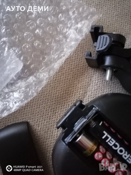 ЛЕД лампата 2 в 1 с два лазера работи с две батерии тип ААА, които се поставят в долната част на лампата .