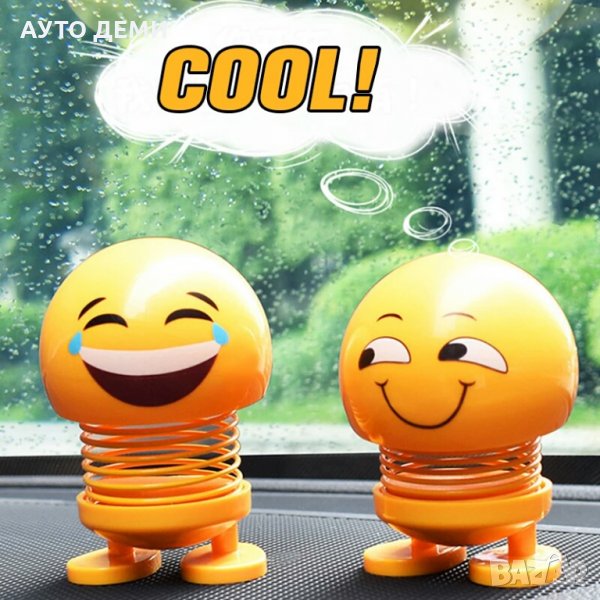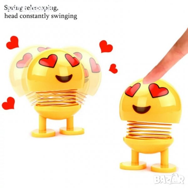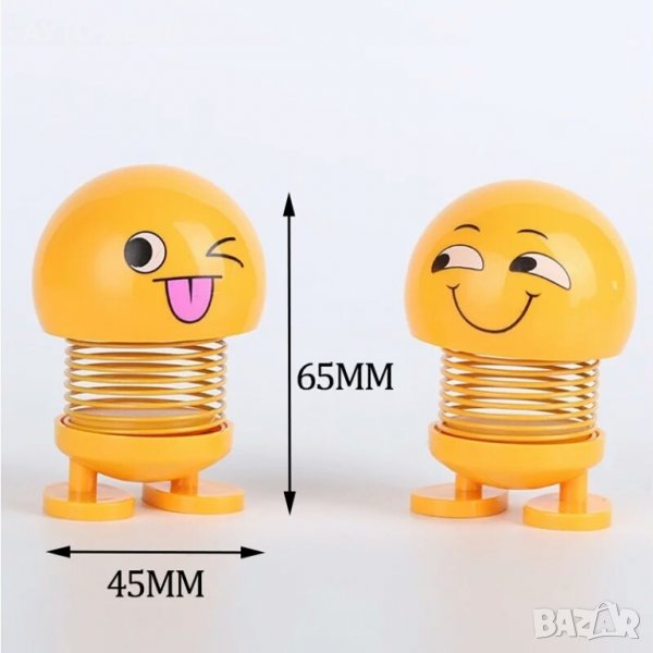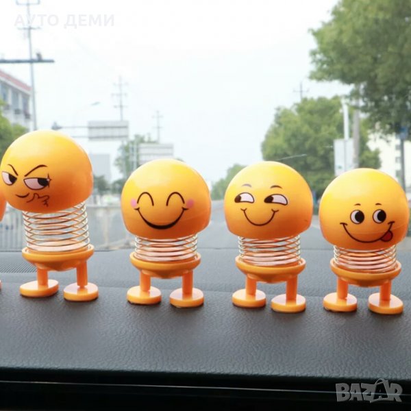 Продавам жълти пластмасови имотикони , емоджита с различни настроения с метална пружина и двойно лепящи ленти в долната част на краката за залепване на различни повърхности като например таблото на автомобила.