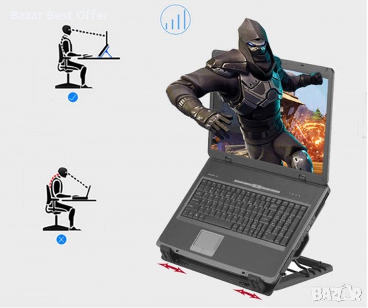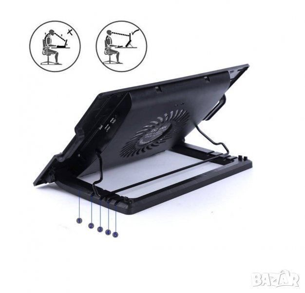 Охладителна подложка за лаптоп - ергономичен дизайн с алуминиева основа.
