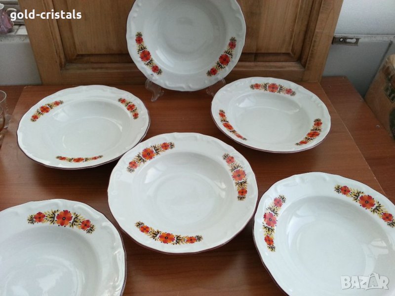 Стар български порцелан чинии дълбоки с бароков релеф стил 6бр-42лв налични 12бр неизползвани има и с фабрични точки и ползвани 6бр-25лв при интерес ще покажа снимки сервиз комплект сет лот ретро арт декор винтидж колекция стари антикварни предмети обзавеждане за дома и семейството подходящи за подарък за ценители и колекционери
