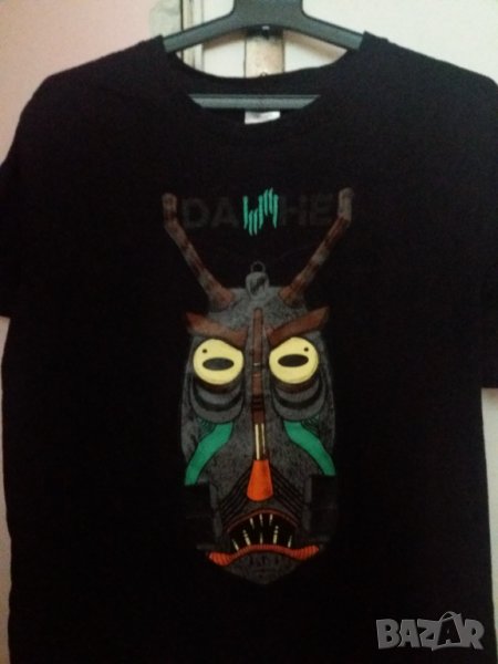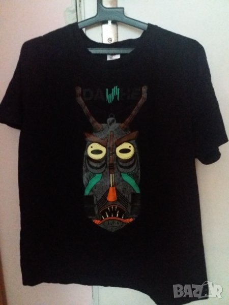 Тениска черна с цветна апликация "маска", размер М-Л. Отговарям на съобщения тук, изпращам с Еконт, Спиди или лично предаване в София по избор.