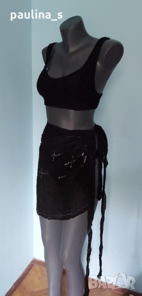 1️⃣. Танкини в черно от релефен плат с декорирано парео подарък - M/XL - 24,99лв / 12,5 евро.