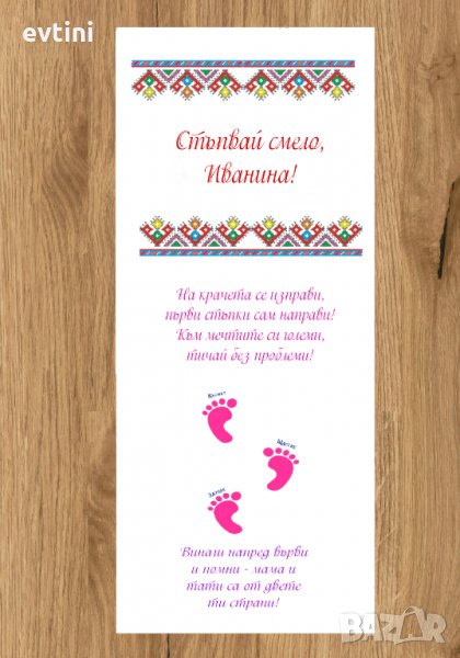 Платно за прощъпулник, със стихче и име (Добавяне на крачетата надпис „Раз“,“Два“,“Три“) = 22.99лв.