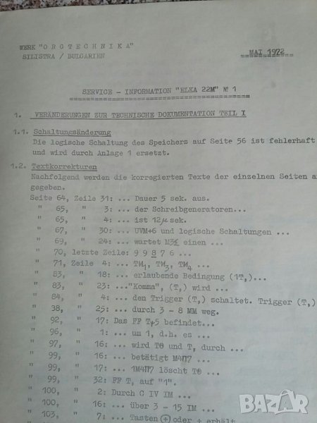 3. Елка 22М промени в техническата документация с електрически и монтажни схеми част 1 на немски 1972г. 18стр. - 80 евро. продадена